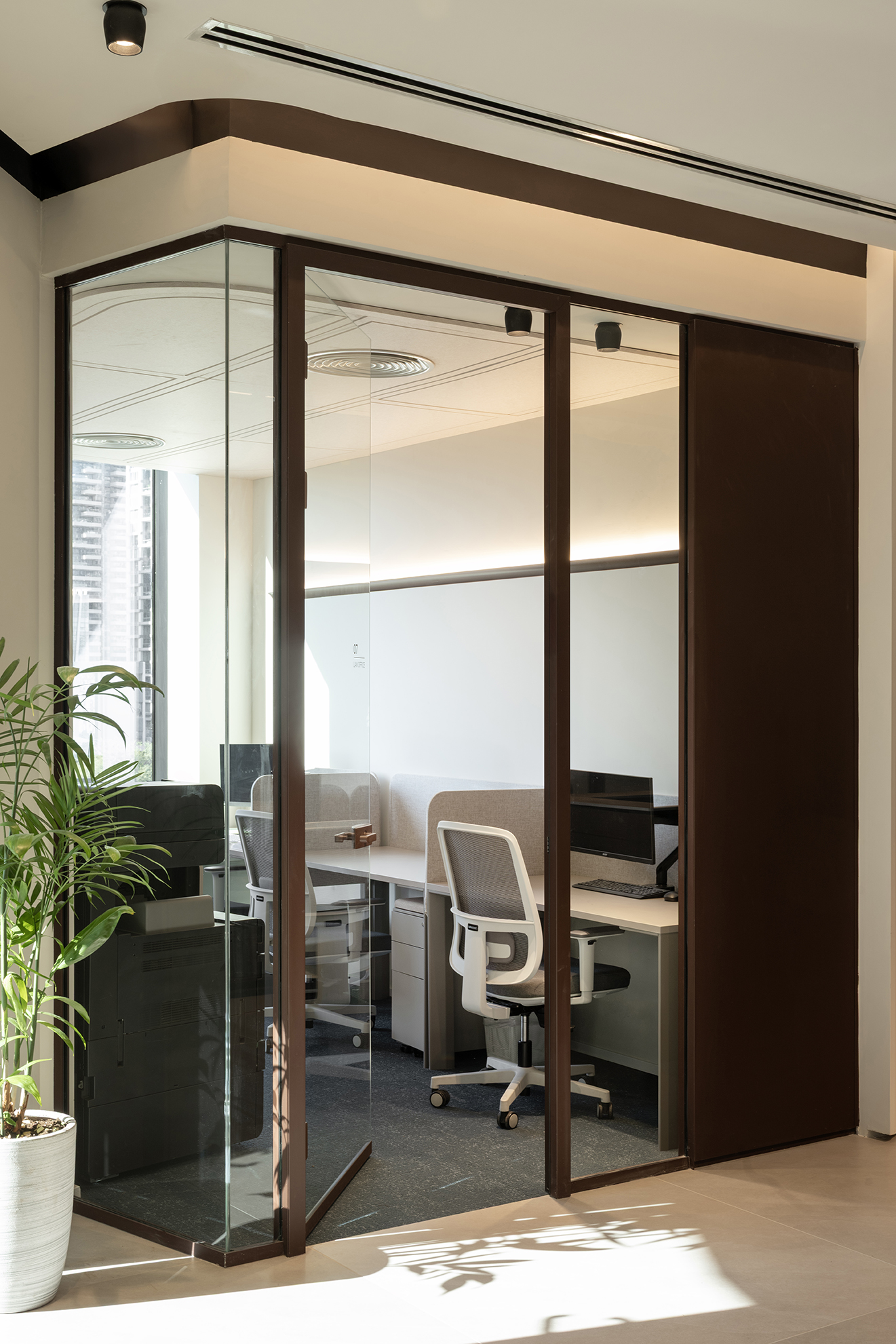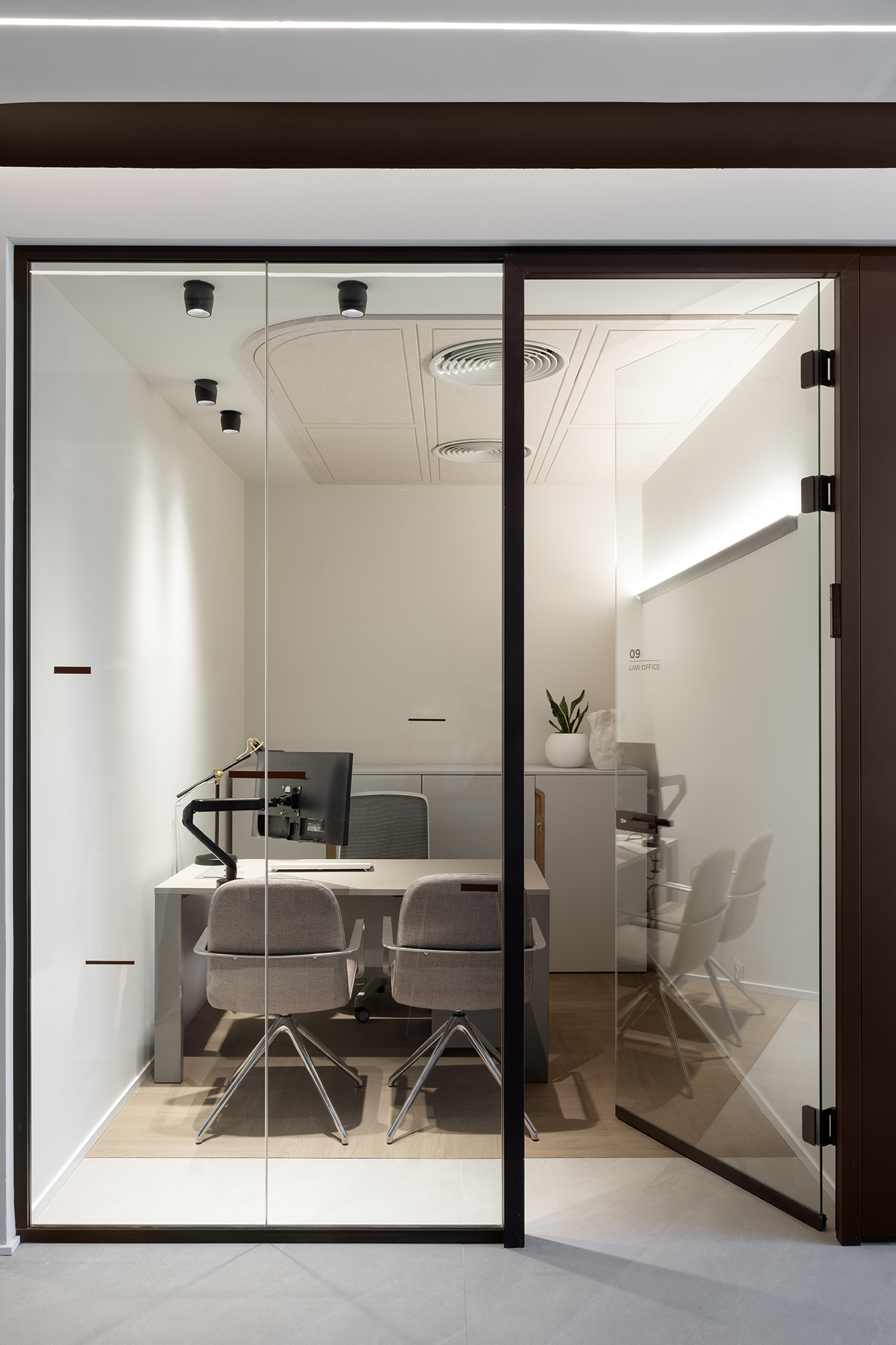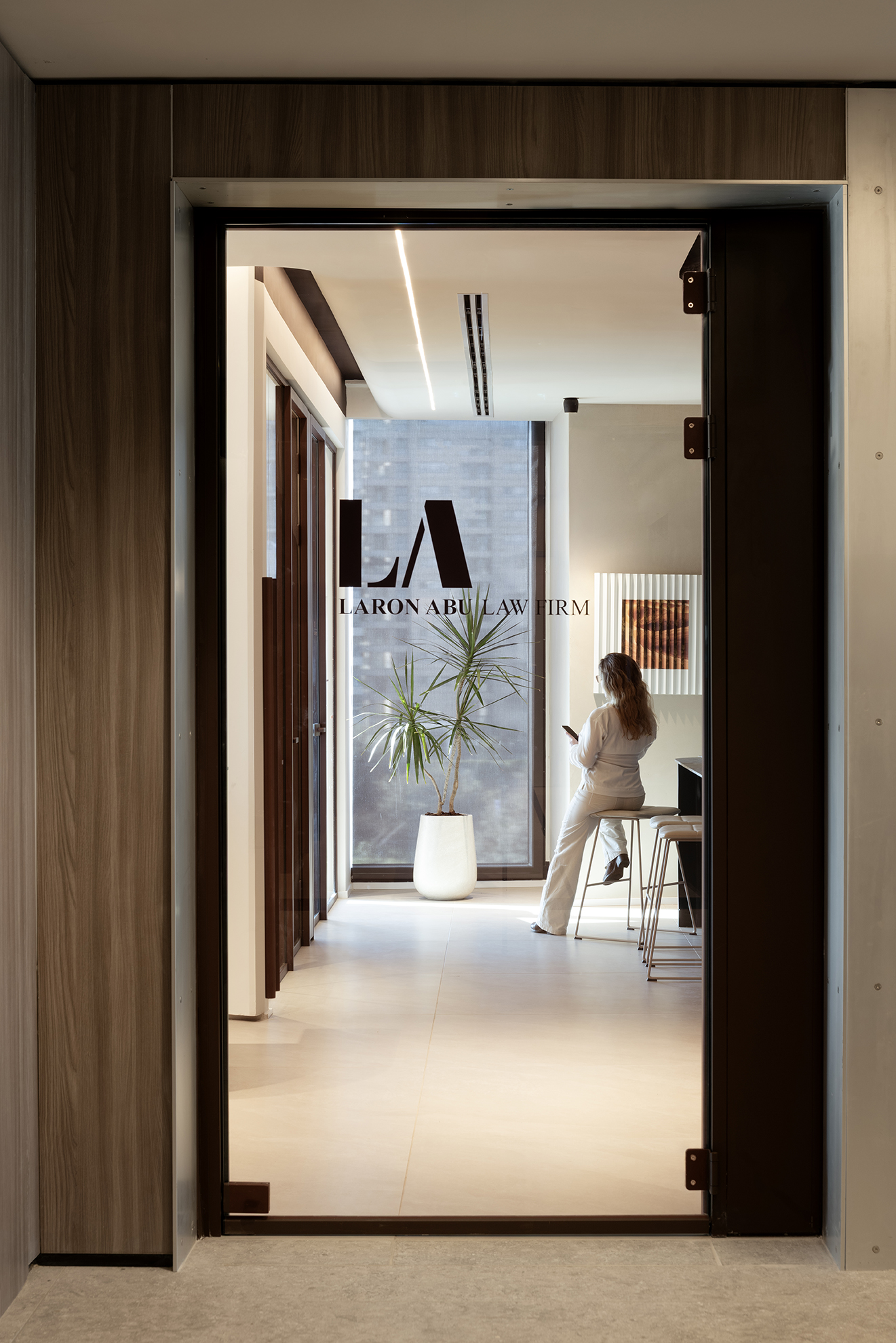 Abu Laron – Law office Work Space Location: Icon Tower, Ramat Gan Size: 300 sq.m Finished: 2025 Photos: Gidon Levin Team: Eden Frenkel, Eran Naim